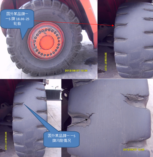 8、國外品牌輪胎使用情況,同樣出現花紋溝底裂口——大連勝獅國際