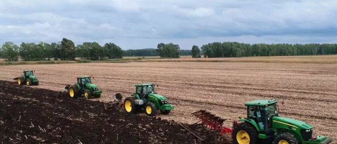 演示對比測試結束后,3臺同樣裝配前進子午線寬胎的7930與3臺安裝標準子午線輪胎的約翰迪爾7M2204,同時進行翻地的農場實際作業演示,用戶對犁地效果非常滿意。