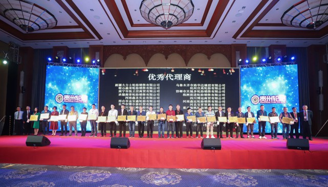 大會先后向獲獎的73家經銷商頒發了戰略合作伙伴獎、最佳貢獻獎、優秀經銷商獎和最佳進步獎。貴州輪胎黨委書記黃舸舸先生、貴州輪胎總經理何宇平先生分別向向獲得“戰略合作合作”獎的19家經銷商頒獎。