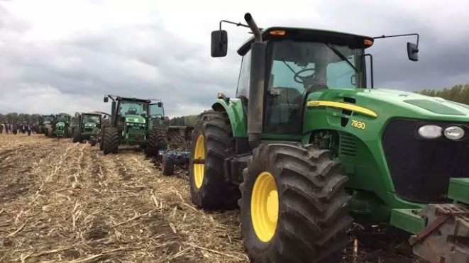 演示對比測試結束后,3臺同樣裝配前進子午線寬胎的7930與3臺安裝標準子午線輪胎的約翰迪爾7M2204,同時進行翻地的農場實際作業演示,用戶對犁地效果非常滿意。