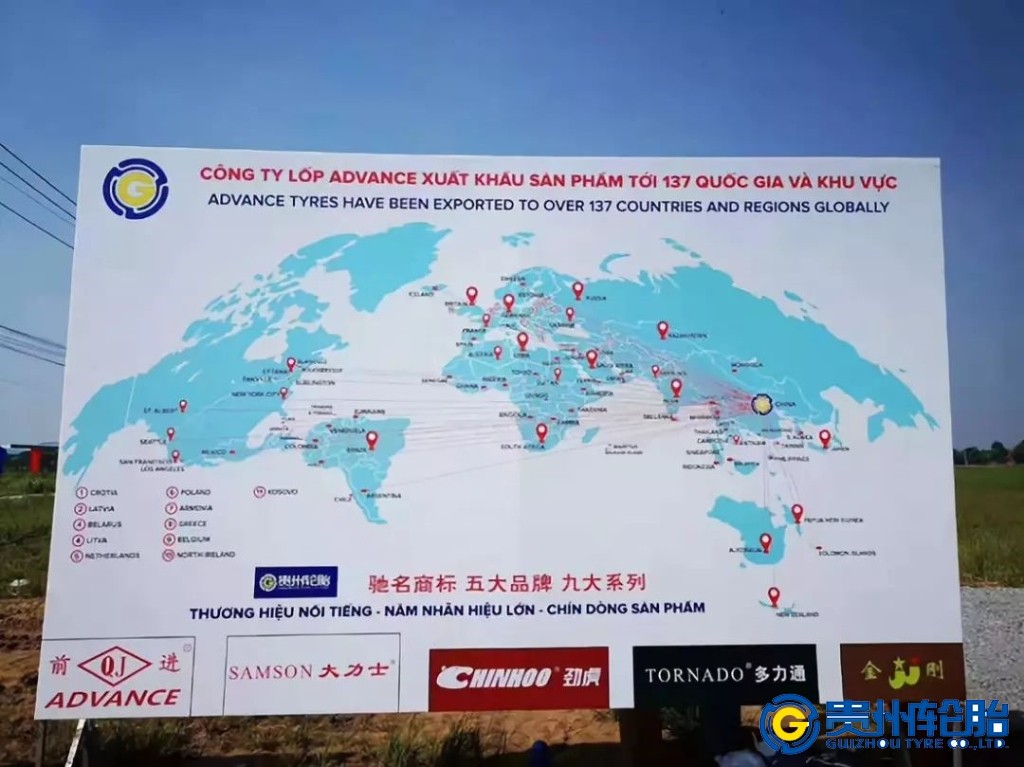貴州輪胎國內年產300萬套和海外年產120萬套的高性能智能化全鋼子午胎項目分別于2019年12月14日在貴陽市修文縣扎佐工業區的貴州輪胎新廠區和2019年12月15日在越南前江省龍江工業園區相繼開工。