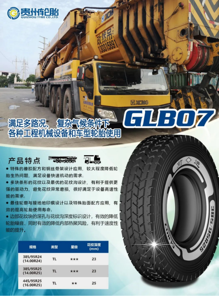輪胎(tai)(tai)胎(tai)(tai)側(ce)標識(shi)結合貴州輪胎(tai)(tai)LOGO進行了全新的外觀(guan)升(sheng)級,大大提升(sheng)了貴州(zhou)輪胎的產(chan)品(pin)品(pin)牌形(xing)象,更(geng)加符合(he)用(yong)戶對起重機高端定制(zhi)的要求。