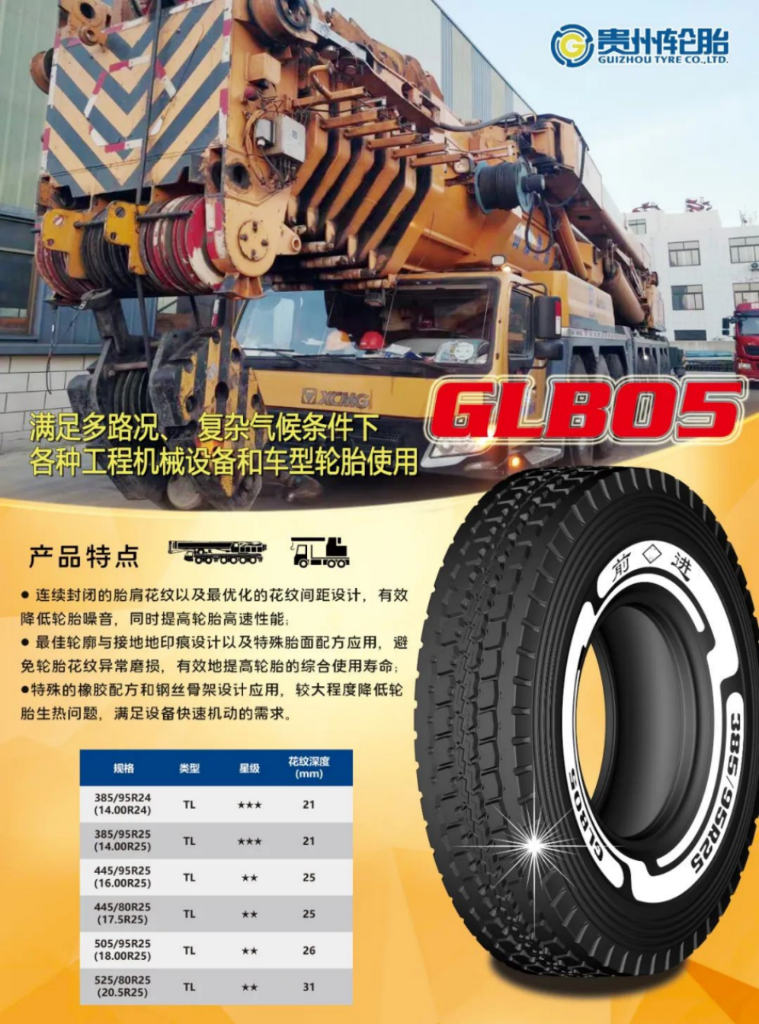 輪胎(tai)(tai)胎(tai)(tai)側(ce)標識(shi)結合貴州輪胎(tai)(tai)LOGO進行了全新的外觀(guan)升(sheng)級,大大提升(sheng)了貴州(zhou)輪胎的產(chan)品(pin)品(pin)牌形(xing)象,更(geng)加符合(he)用(yong)戶對起重機高端定制(zhi)的要求。